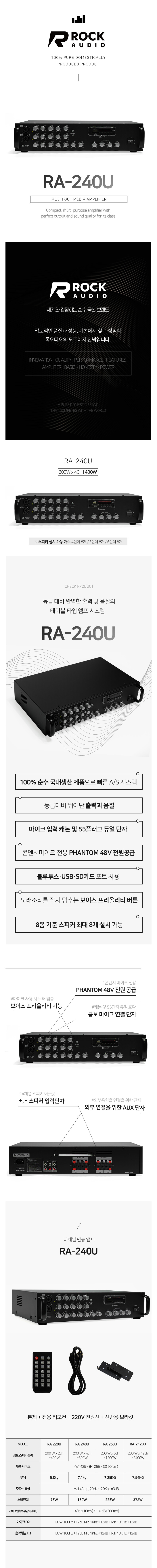 ROCK AUDIO 200W 4채널 앰프 RA-240U