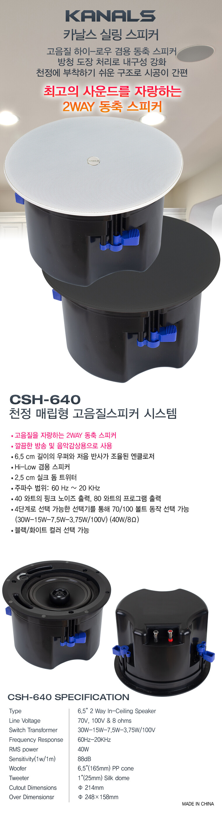 KANALS 천장형 고음질 스피커 CSH-640 / 1P