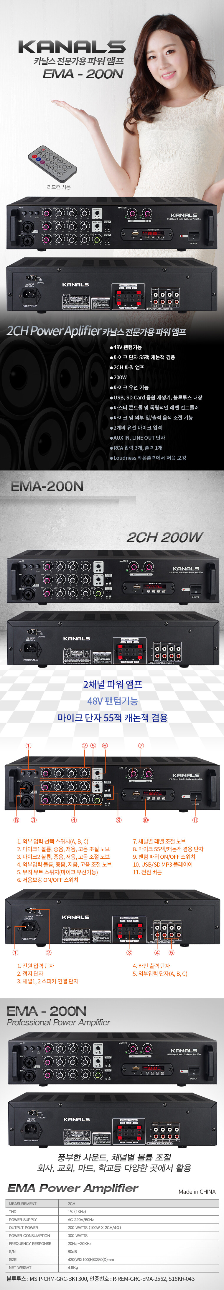 KANALS 2채널 파워믹서앰프 EMA-200N