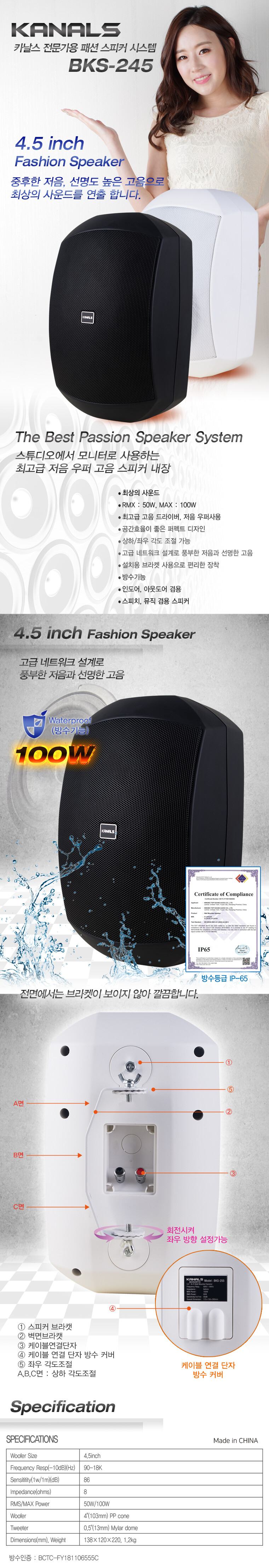 KANALS 4.5인치 방수 스피커 BKS-245 / 1P