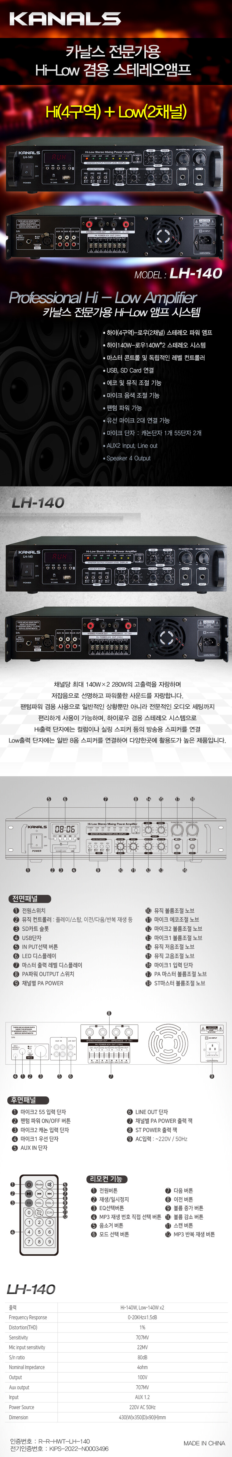 KANALS 2채널 LOW HI 임피던스 겸용 앰프 LH-140